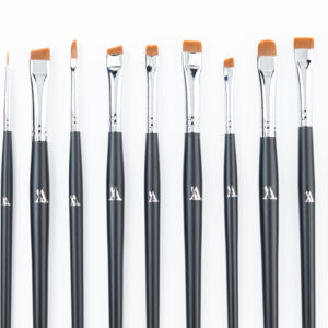 Широкий скошенний пензлик: Цей пензлик ідеально підходить для заповнення брів та створення чітких контурів. Його форма дозволяє легко наносити фарбу